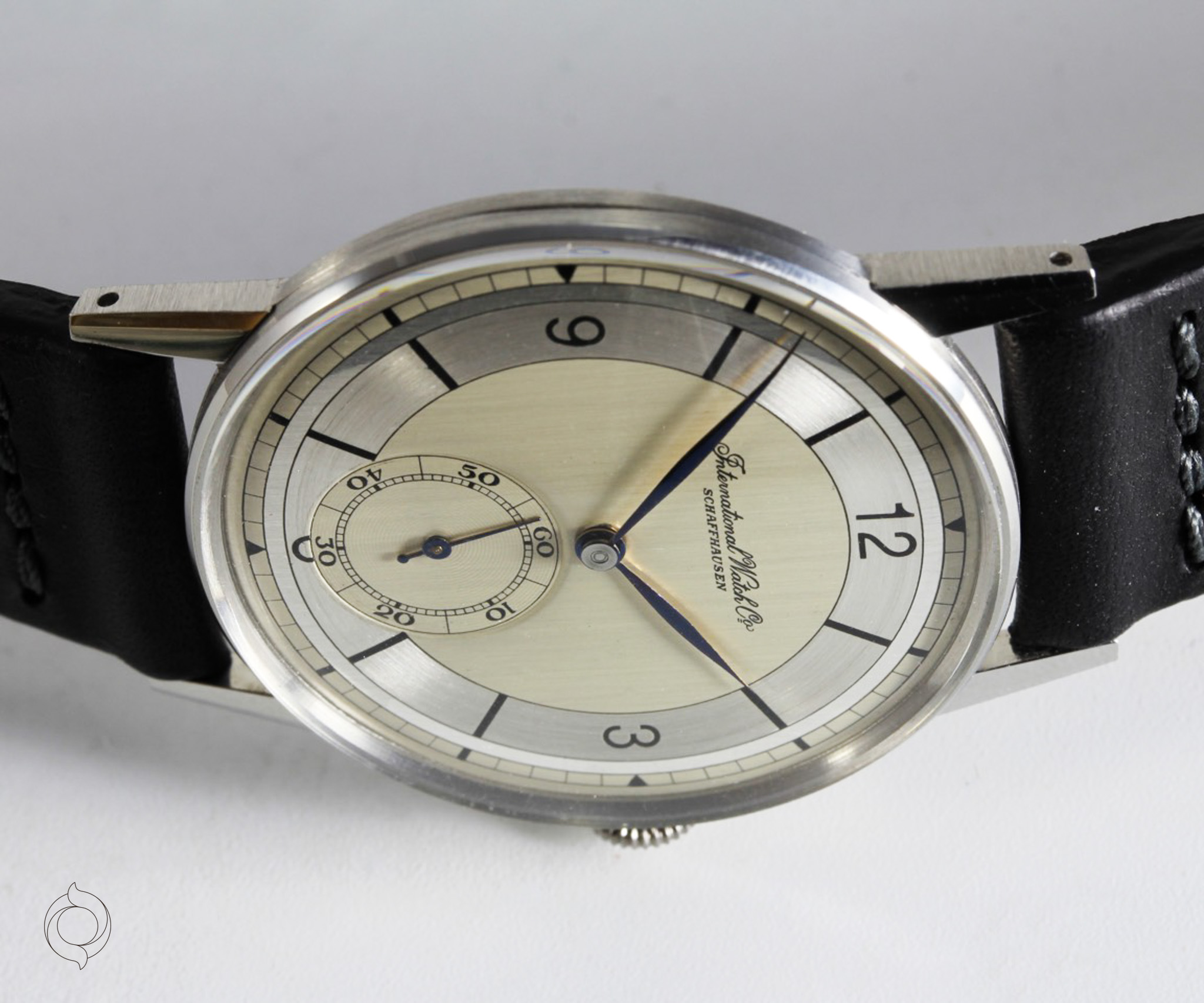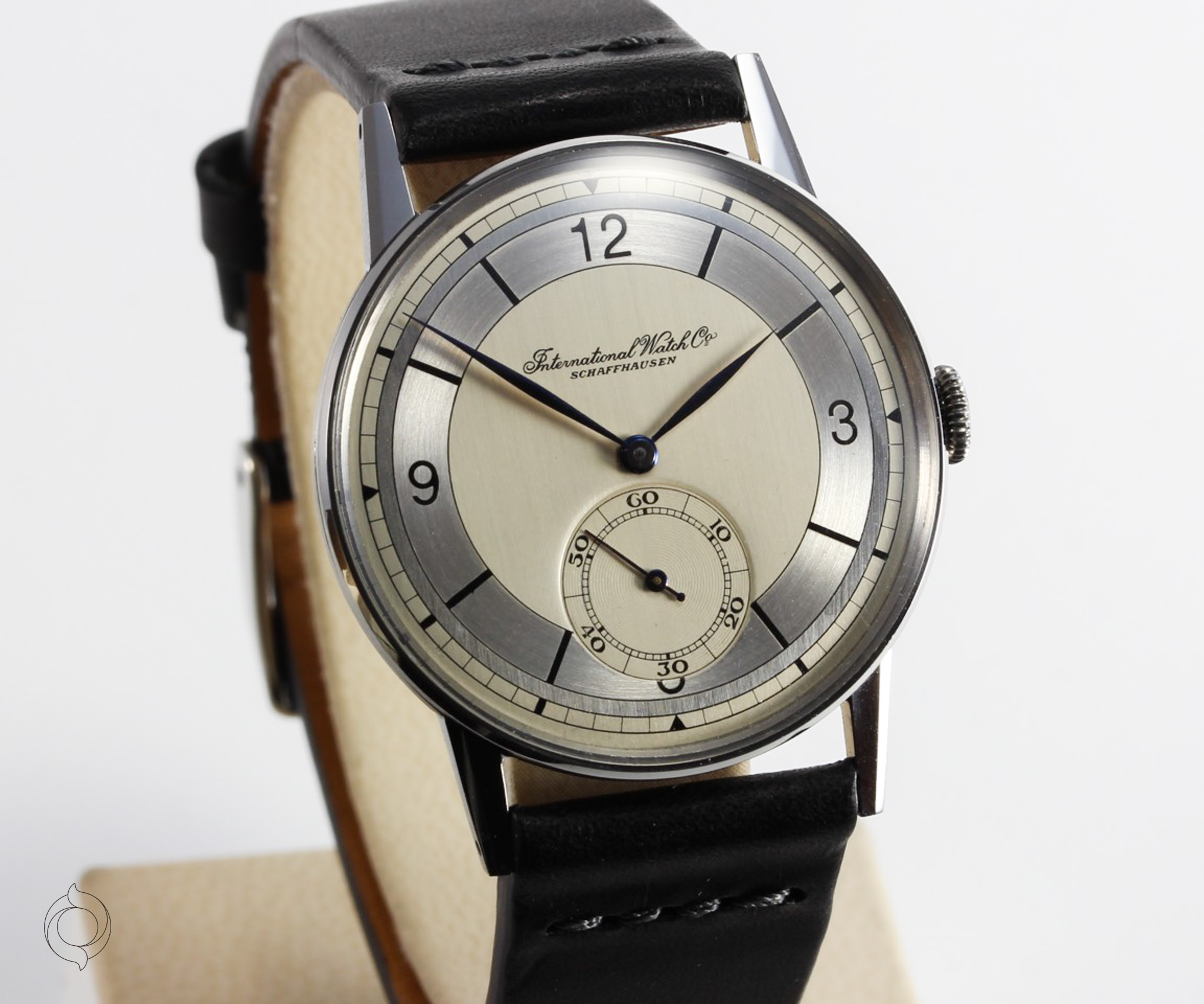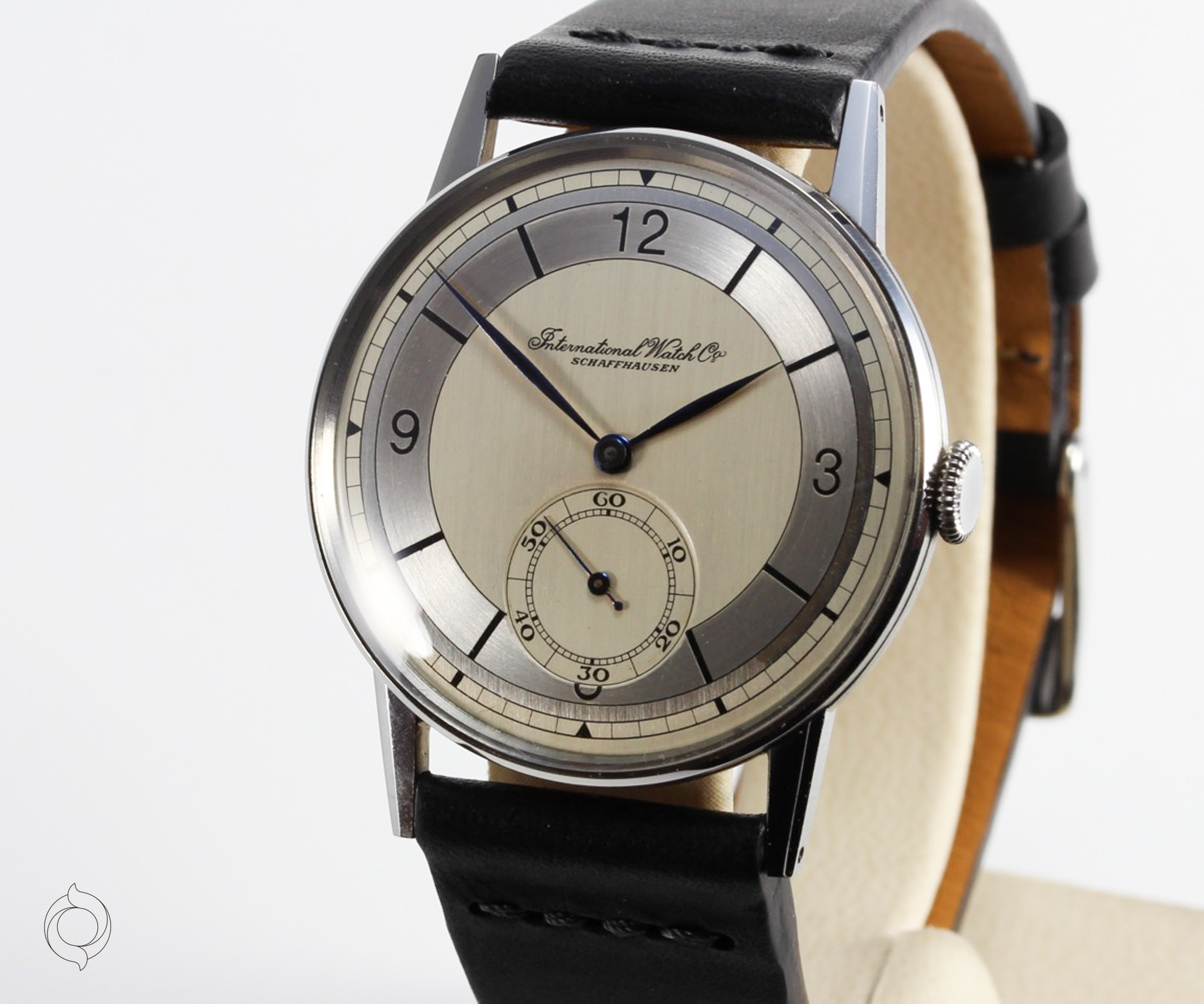 Bildschöne IWC Vintage Uhr, sehr seltenes Handaufzug Kaliber 62, zweifarbig silbernes Zifferblatt, feine gebläute Zeiger, Herstellung 1941, Jahresproduktion 1941 nur 2400 Stück, exzellenter Zustand! Zifferblatt, Gehäuse und Werk sind IWC signiert Zubehör: GARANTIEKARTE, SCHÖNE SAMMLERUHREN Echtheitszertifikat, Dokumentation und SCHÖNE SAMMLERUHREN Uhrenbox