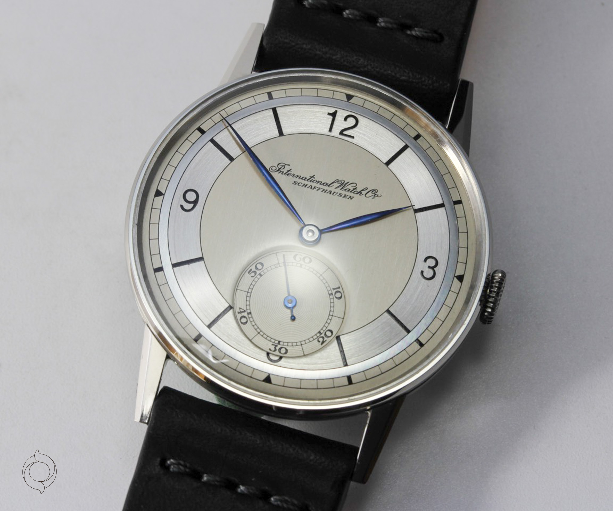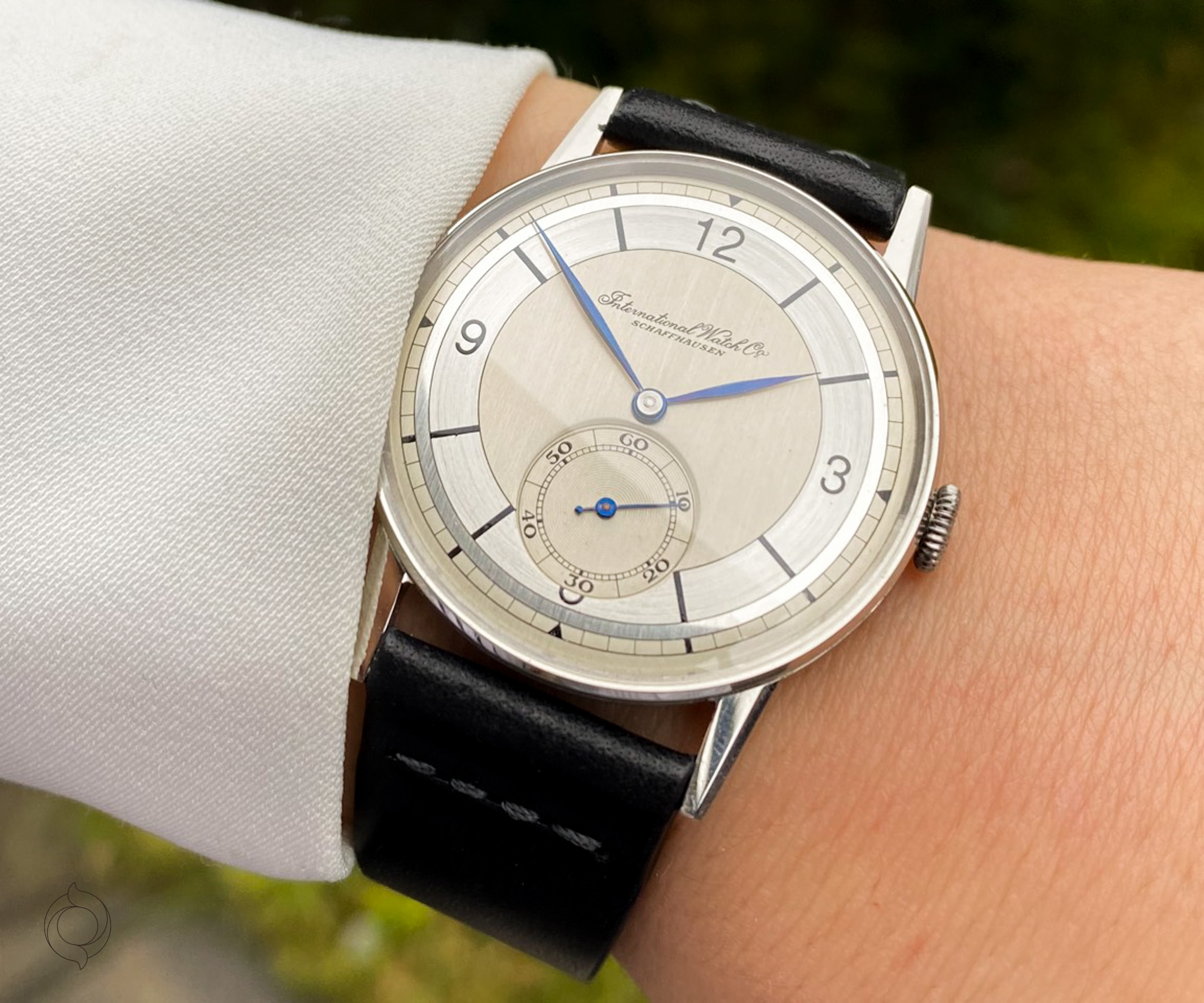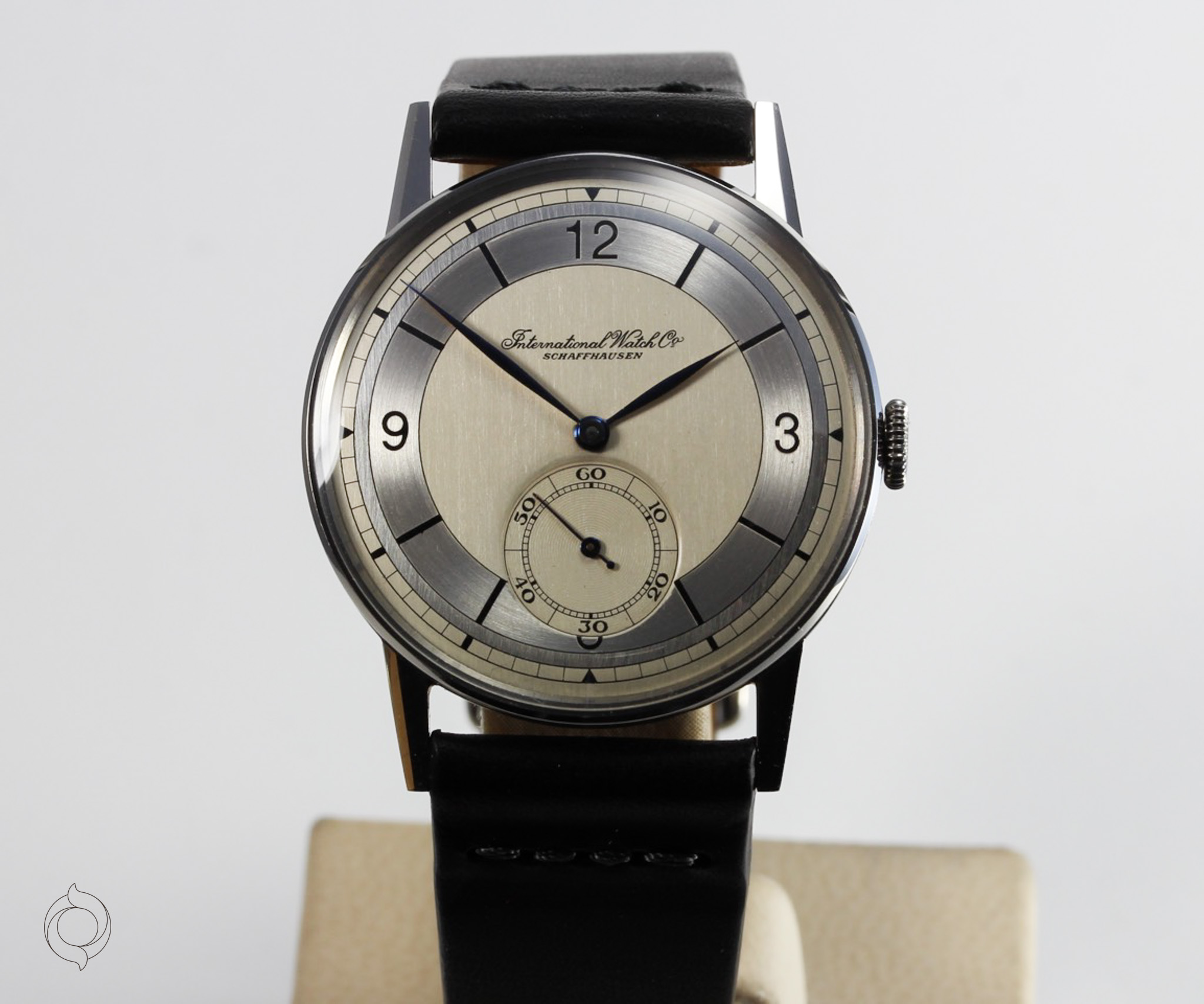 Bildschöne IWC Vintage Uhr, sehr seltenes Handaufzug Kaliber 62, zweifarbig silbernes Zifferblatt, feine gebläute Zeiger, Herstellung 1941, Jahresproduktion 1941 nur 2400 Stück, exzellenter Zustand! Zifferblatt, Gehäuse und Werk sind IWC signiert Zubehör: GARANTIEKARTE, SCHÖNE SAMMLERUHREN Echtheitszertifikat, Dokumentation und SCHÖNE SAMMLERUHREN Uhrenbox
