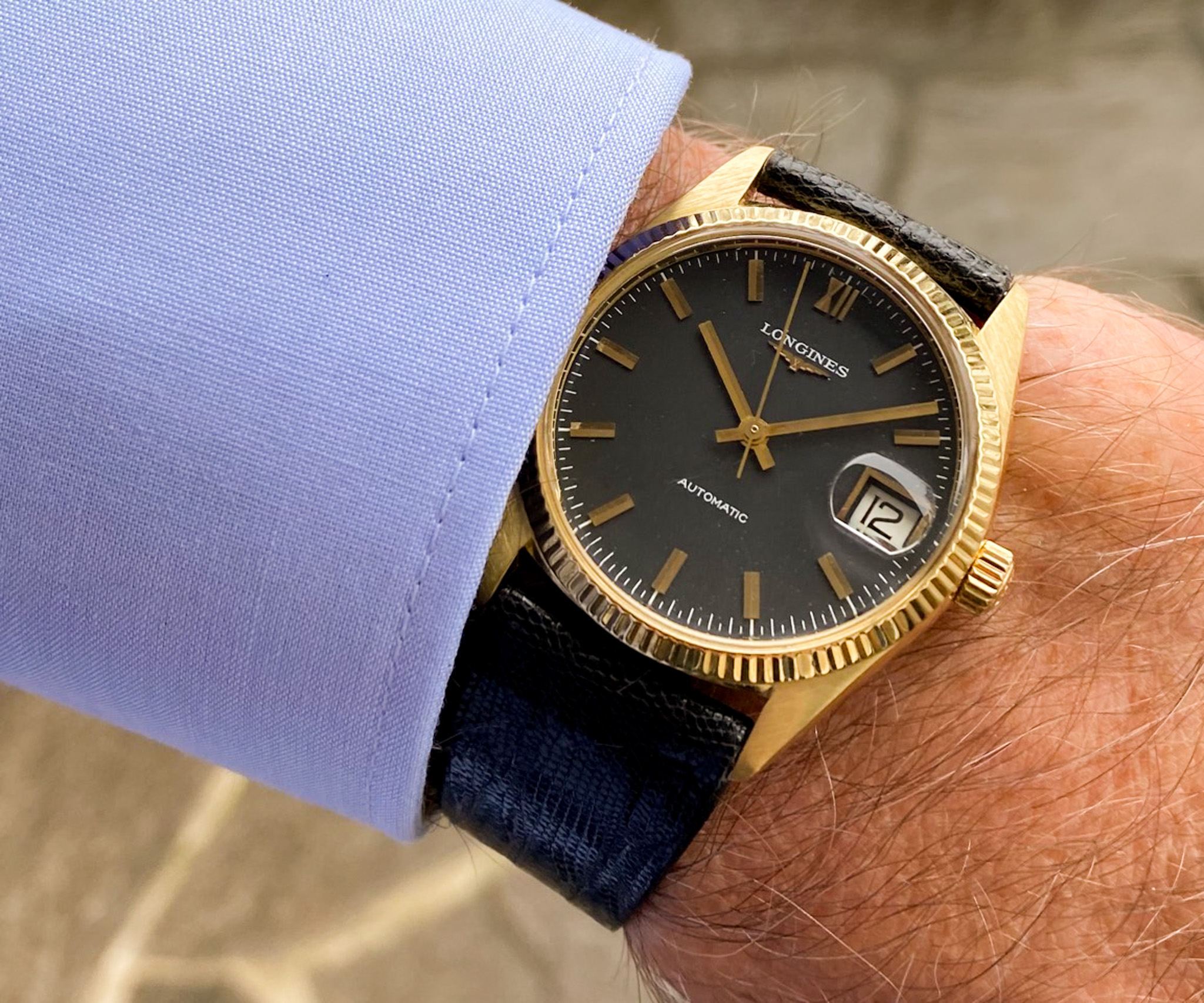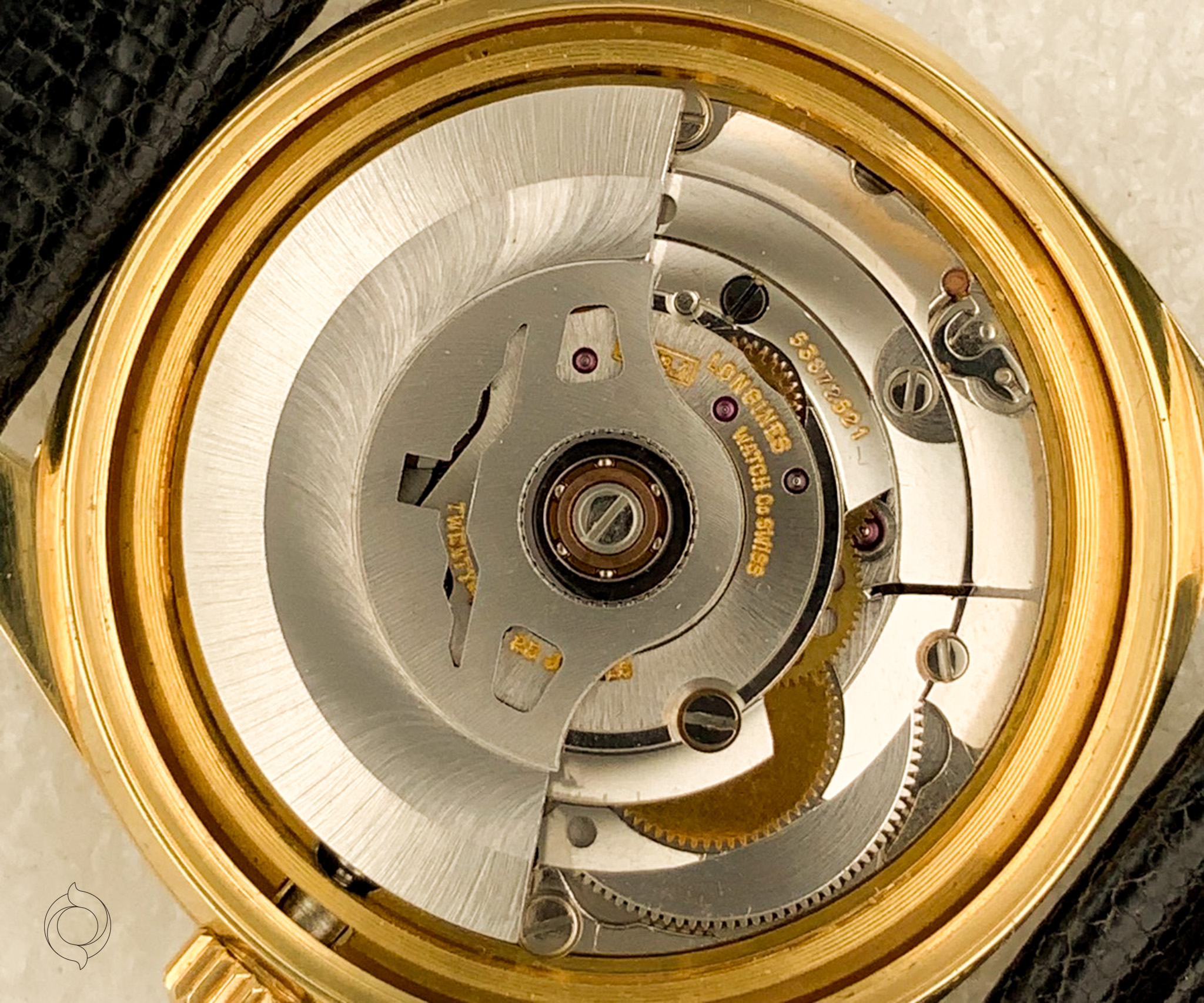 Schwarzes Eidechsen-Lederband mit vergoldeter LONGINES Dornschließe (Die Uhr kann mit einem anderen oder zusätzlichem Armband geliefert werden)