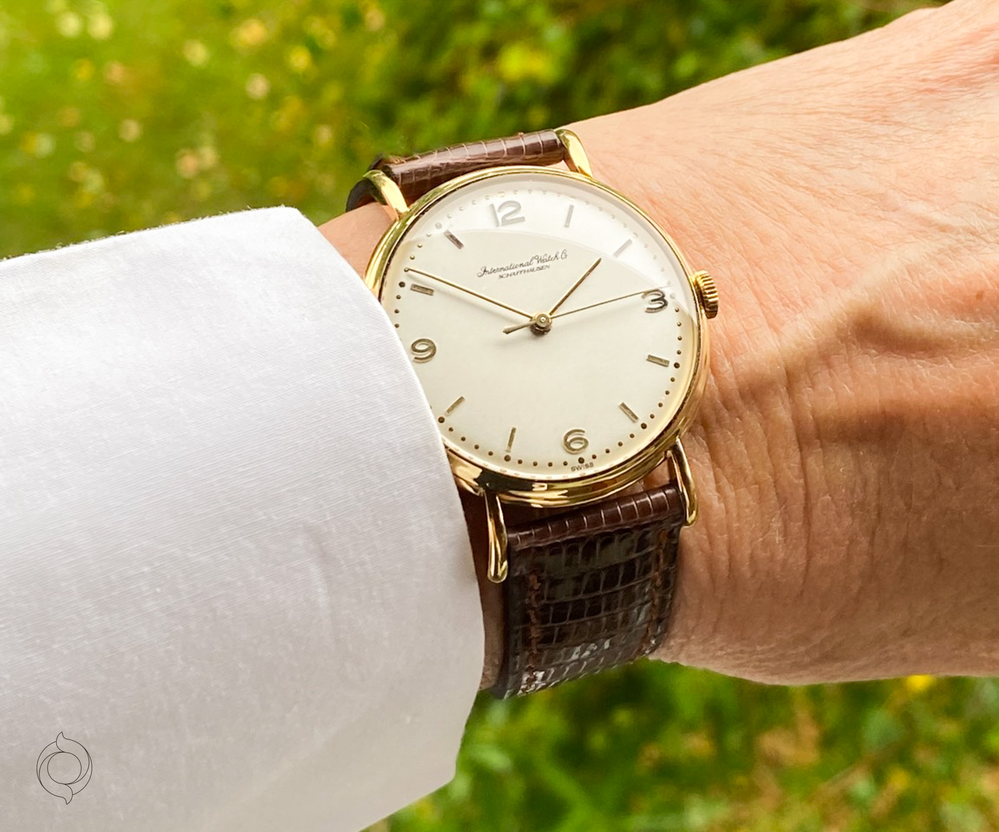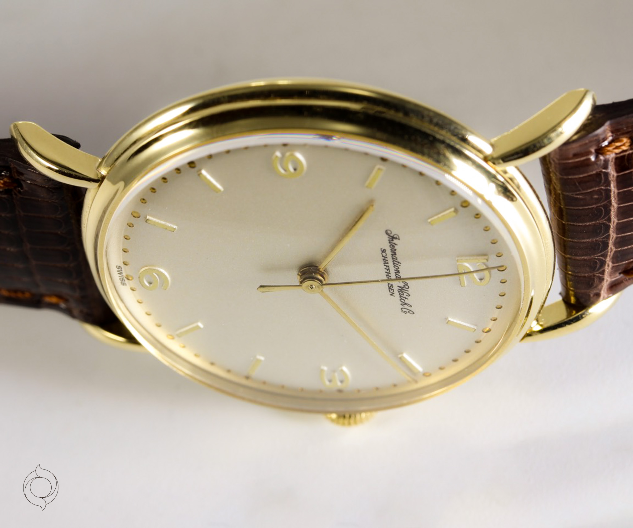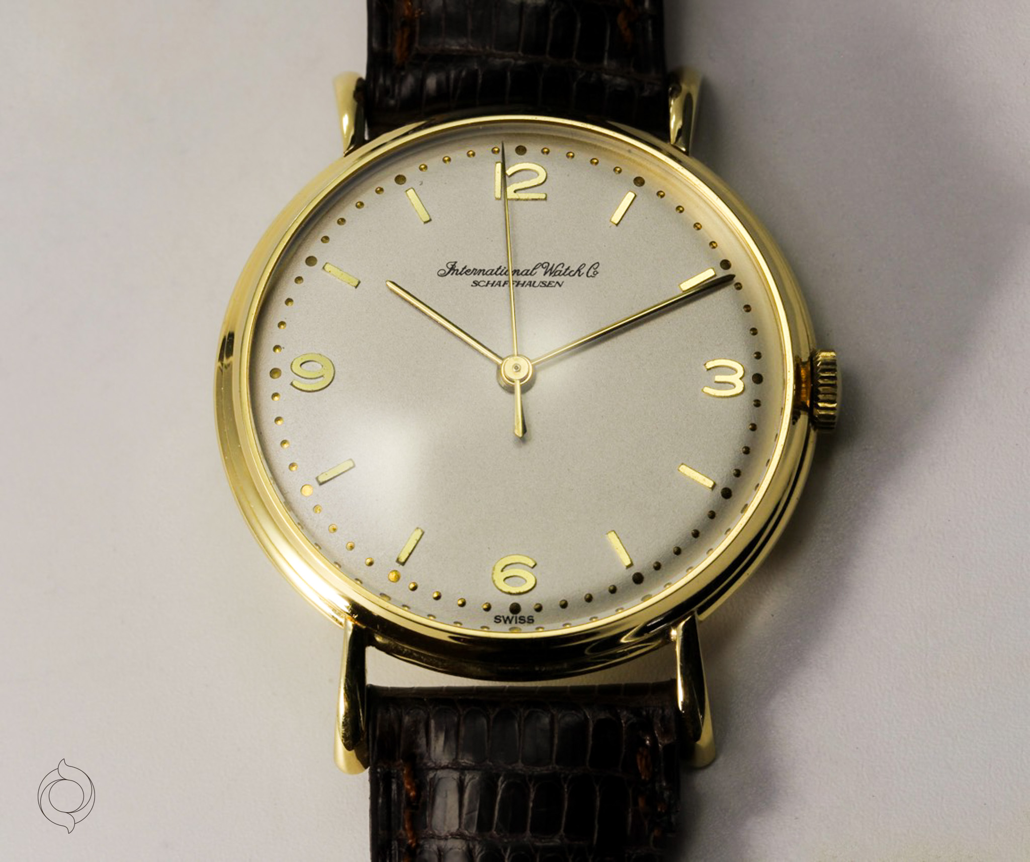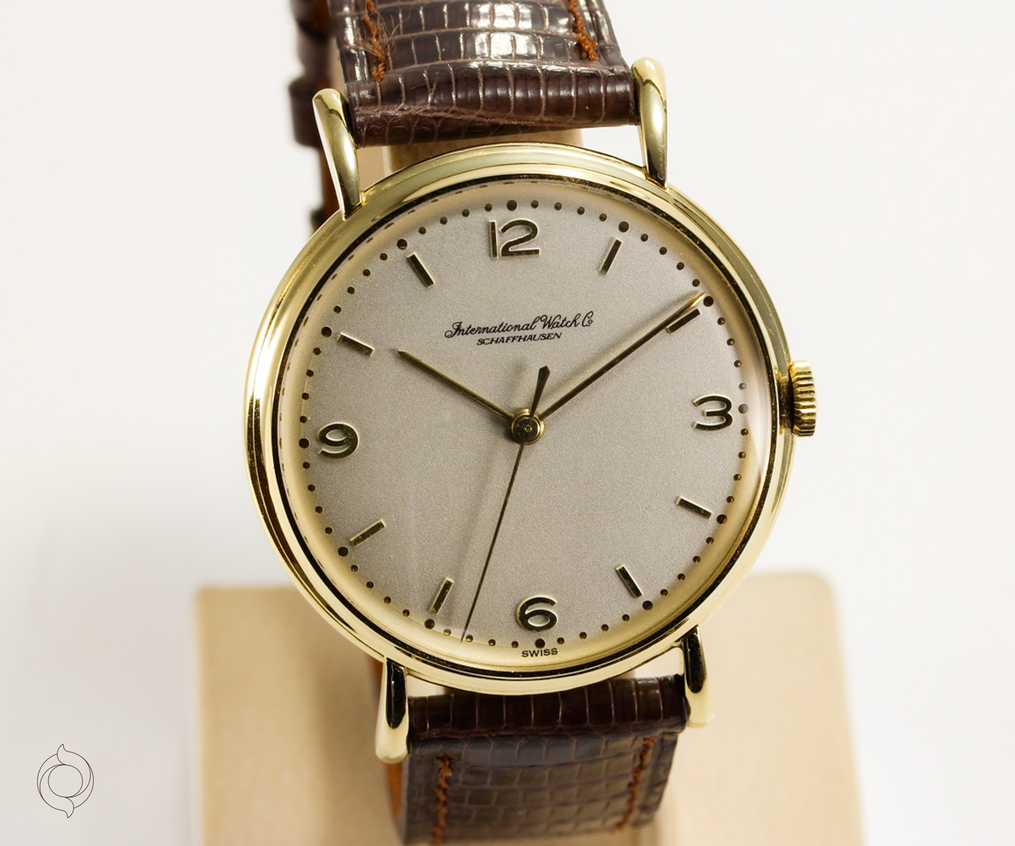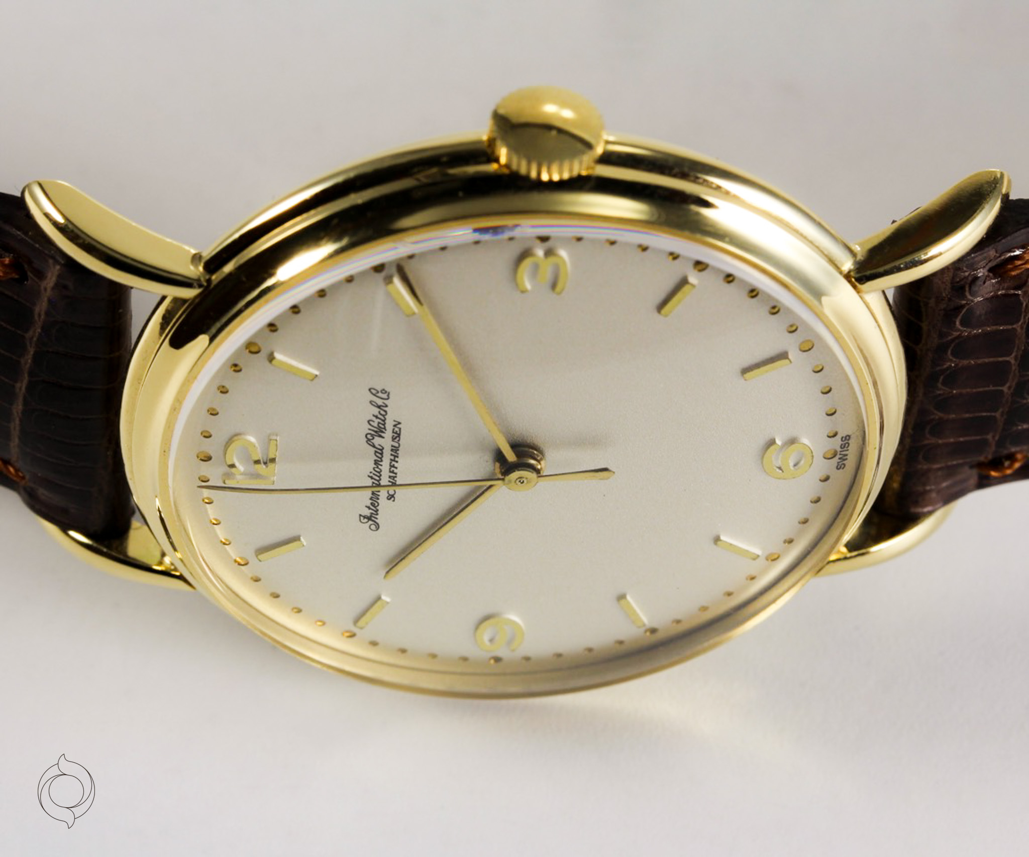 Hochwertige edle IWC Vintage Uhr großes 18K Gold Gehäuse 36 mm, gestreckte Bandanstöße, Goldpunze am Bandanstoß und Gehäuserand, Gewicht 39 g, silbernes Zifferblatt, bewährtes Kaliber 89, Herstellung 1948, unbehandelt original exzellent erhalten! Zifferblatt, Gehäuse, Werk und Schließe sind IWC signiert Zubehör: GARANTIEKARTE, SCHÖNE SAMMLERUHREN Echtheitszertifikat, Dokumentation und SCHÖNE SAMMLERUHREN Uhrenbox